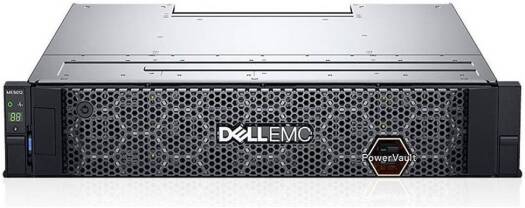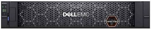 Dell PowerVault ME5024 2U storage array with rack rails, dual controllers, 10Gb iSCSI Base-T 8-port connectivity, 53.76TB total capacity (7×7.68TB SAS SSDs), and a 580W redundant power supply.