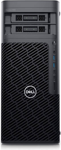 Dell Precision 5860 Tower workstation with Intel Xeon W5-2565X processor, 32GB RAM, 2TB SSD, NVIDIA RTX A1000 8GB GPU, English-Arabic keyboard and mouse, running Windows 11 Pro.