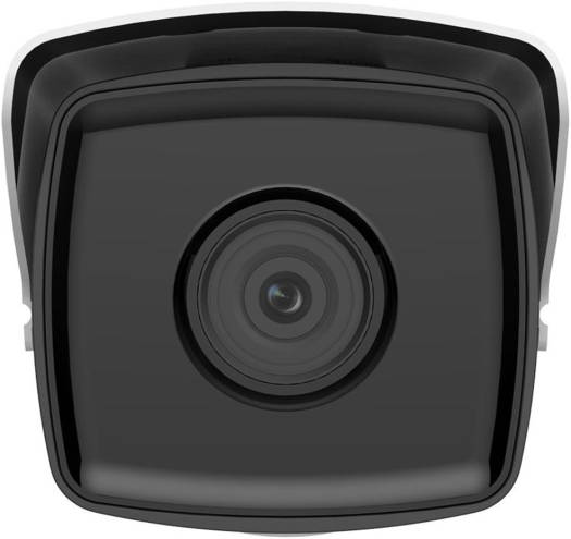 Hikvision 4MP AcuSense fixed bullet network camera with a 2.8mm lens, H.265+ compression, up to 60m IR range, RJ45 Ethernet, and support for up to 6 channels (white).