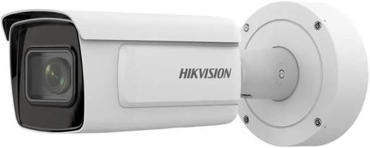 Hikvision 4MP DeepinView ANPR motorized varifocal bullet camera with a 1/1.8" progressive scan CMOS sensor, video bit rate of 32 Kbps–8 Mbps, mono sound, and maximum resolution of 2688 × 1520 (white).