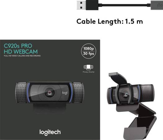Logitech C920S HD Pro Webcam with Privacy Shutter – 1080p Streaming and Recording, Widescreen Video Calling, Compatible with Desktop and Laptop Computers