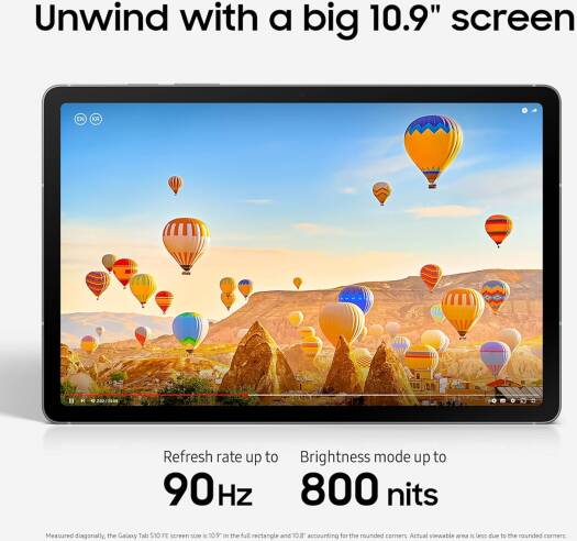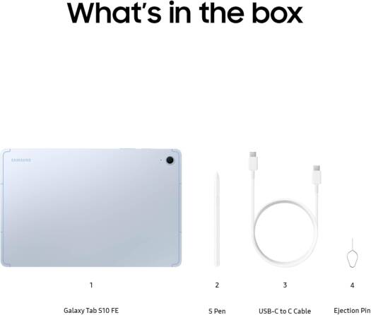 Samsung Galaxy Tab S10 FE, 10.9" WUXGA+ TFT display, 8GB RAM, 128GB storage, includes S Pen, 8000mAh battery, International Version, in Blue.