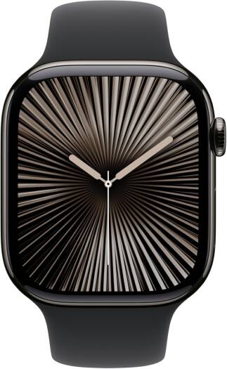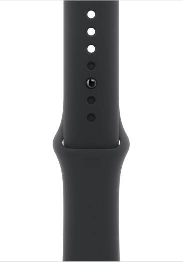 Apple Watch Sport Band, 46mm (S/M), fits 140–190mm wrists, made of high-performance fluoroelastomer, Black.