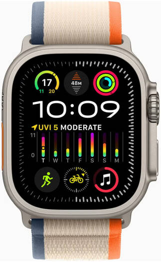 Apple Watch Ultra 2 (GPS + Cellular, 49mm) with an M/L orange-beige Trail Loop, model MRF23.