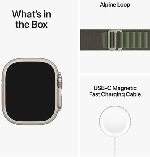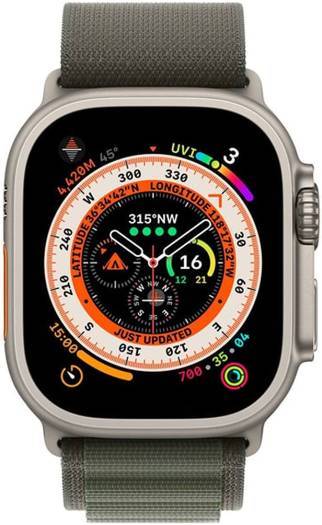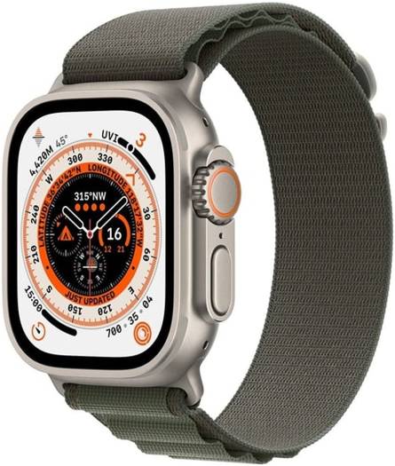 Apple Watch Ultra with GPS + Cellular, 49mm titanium case, green Alpine Loop (Large), customizable Action Button, and up to 36 hours of battery life