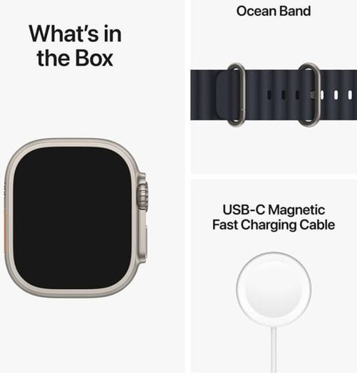 Apple Watch Ultra with GPS + Cellular, 49mm titanium case, midnight Ocean band (S/M), customizable Action Button, and up to 36 hours of battery life