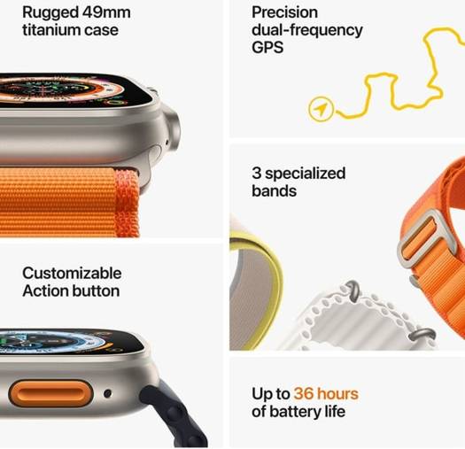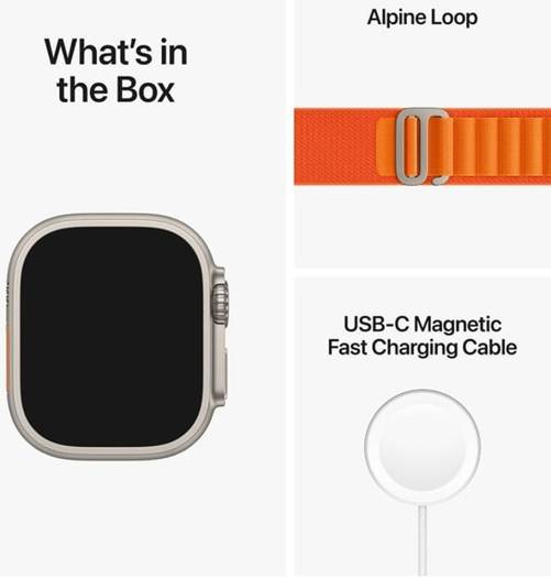 Apple Watch Ultra with GPS + Cellular, 49mm titanium case, orange Alpine Loop (Small), customizable Action Button, and up to 36 hours of battery life