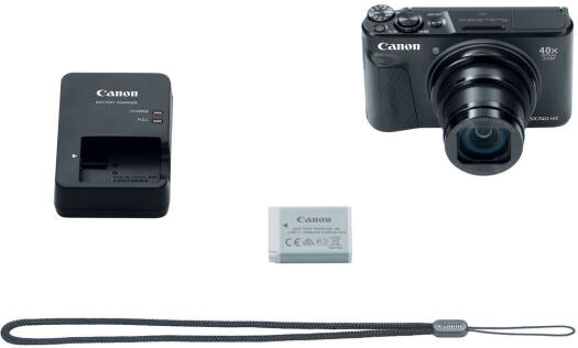 Canon PowerShot SX740 HS Camera – Black, featuring a 20.3MP CMOS sensor, DIGIC 8 Image Processor, 40x Optical Zoom with Optical Image Stabilization (24–960mm), 3" tilting LCD display, ISO 100–3200 (expandable), and built-in Wi-Fi & Bluetooth connectivity.