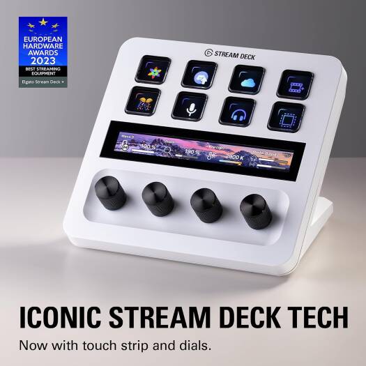 Elgato Stream Deck Plus +. 8x Programmable Buttons, USB 2.0 Interface, LCD Touchscreen, 4 x 360° Encoders With Push Function, White
