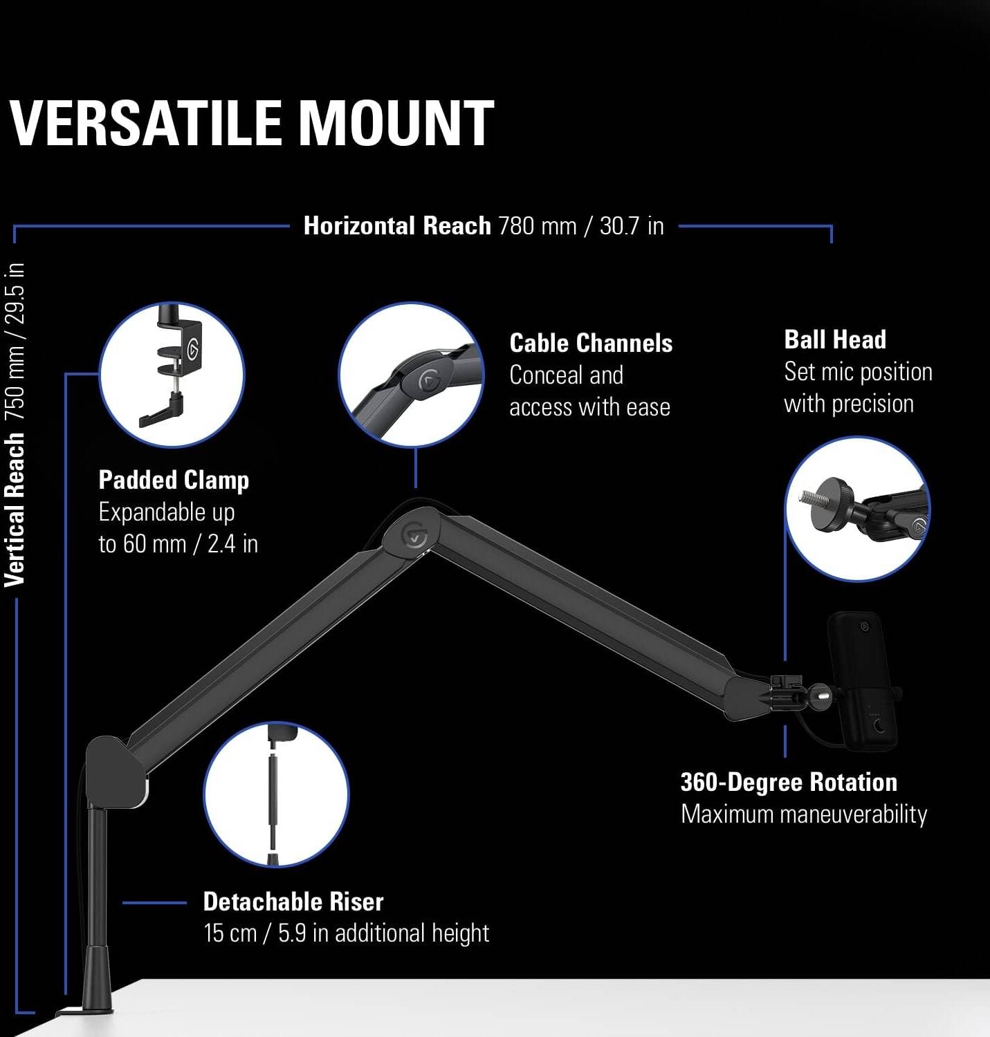 Type: Fully adjustable boom arm