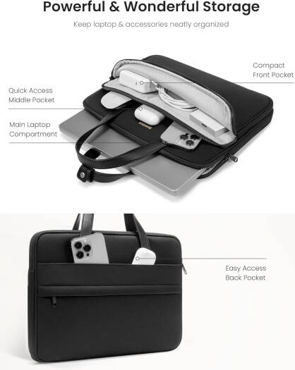 Her-H22 Laptop Shoulder Bag – CornerArmor Technology, Spacious and Organized Storage, Soft Leather Handle, Smart Luggage Strap, YKK Zipper, Water-Repellent Surface – Black