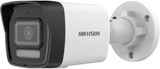 Hikvision 2MP Smart Hybrid Light fixed bullet network camera with a 2.8mm lens, H.265+ compression, up to 30m IR range, built-in microphone, and IP67-rated water and dust resistance (white).