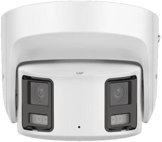Hikvision 8MP Panoramic ColorVu Fixed Turret Network Camera with dual 1/1.8" progressive scan CMOS sensors, 4mm fixed lens, F1.0 aperture, and fixed iris, in white.