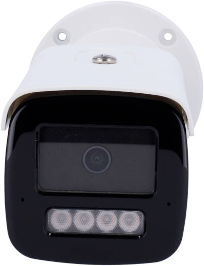 Hikvision PRO Series Bullet Security Camera with 8MP resolution, a 2.8mm lens, 1/2.8" progressive scan CMOS sensor, Motion Detection 2.0, dual-mic array, and IP67 protection, in white.