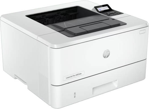 HP LaserJet Pro 4003dw A4 Mono Laser Printer – Up to 40ppm, 1200×1200 dpi, 80,000-page duty cycle, LCD Display, USB, Ethernet & Wi-Fi, White.