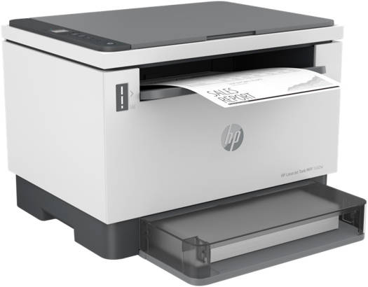 HP LaserJet Tank MFP 1602w A4 Mono Laser Printer – Print, Scan, Copy; up to 22ppm; USB, Wi-Fi & Bluetooth connectivity; 25,000-page duty cycle; White.