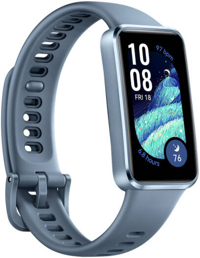 HUAWEI Band 10 smartwatch with 1.47" AMOLED display, 9-axis IMU sensor, emotional wellbeing assistant, advanced sleep analysis, 5 ATM water resistance, aluminum alloy case, fluoroelastomer strap, blue color