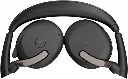 Jabra Evolve2 65 Flex Link MS Stereo Wireless Headset with wireless charging, Bluetooth connectivity, active noise cancellation, 28 mm drivers, built-in microphone, and a black design.