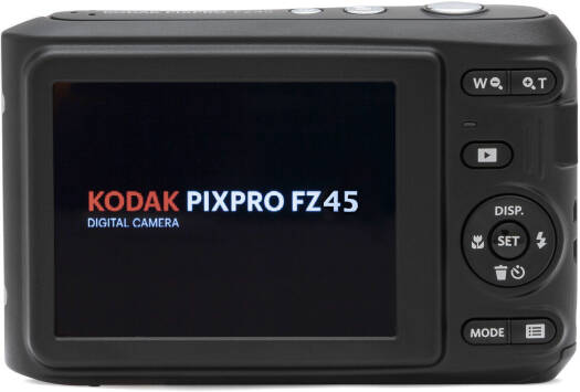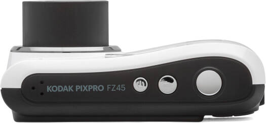 Kodak PIXPRO FZ45 digital camera in white, featuring a 16.35MP sensor, 4× optical zoom, 2.7-inch LCD, multiple shooting modes, face and pet detection, and digital image stabilization.