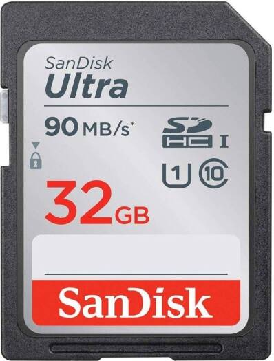Kodak PIXPRO FZ55 digital camera in blue, bundled with a SanDisk 32GB Ultra SD card and card reader, featuring a 16.35MP sensor, 5× optical zoom, 28mm wide-angle lens, 2.7-inch LCD, and Full HD 1080p video recording.