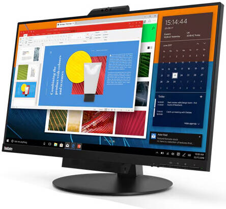 Lenovo ThinkCentre Tiny-In-One 27 27-inch IPS monitor with QHD resolution, 60Hz refresh rate, 4ms (Extreme Mode) response time, 16.7 million color support, built-in speakers, in black.