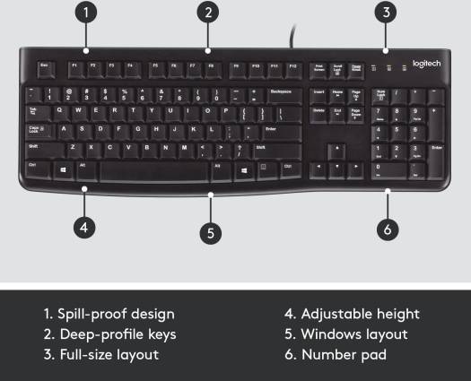 Logitech K120 Wired Business Keyboard for Windows and Linux, USB Plug-and-Play, Full-Size Design, Spill-Resistant, Curved Spacebar, Compatible with PC/Laptop, English/Arabic Layout, Black