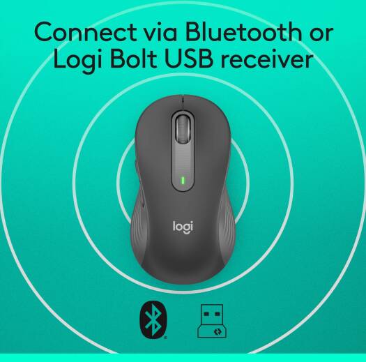 Logitech Signature M650 Wireless Mouse – offers Bluetooth and USB connectivity, up to 2000 DPI with advanced optical tracking, 5 buttons, SilentTouch technology for quiet clicks, in graphite.