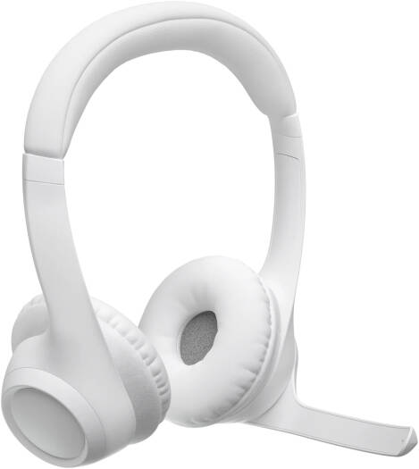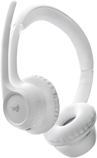 Logitech Zone 300 Wireless Headset in Off-White, featuring 30mm drivers, dual beamforming microphones with noise-canceling technology, Bluetooth 5.3 connectivity, and a 1m USB-C charging cable.