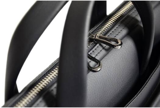 Port Designs ZURICH laptop bag for 14"–15.6" laptops in black, featuring a large front zippered pocket, padded interior, and an adjustable, removable shoulder strap.