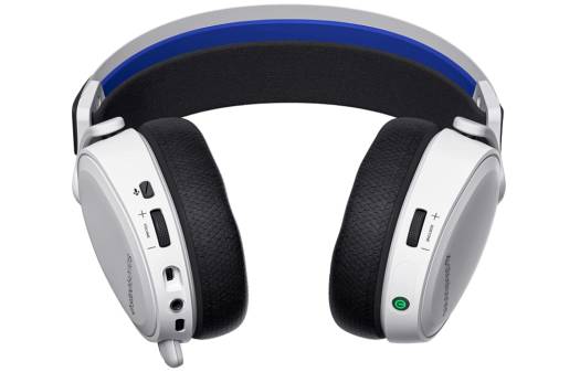 SteelSeries Arctis 7P+ Wireless Gaming Headset with lossless 2.4 GHz connectivity, up to 30 hours of battery life, USB-C charging, 7.1 surround sound, compatible with PC, PS5, PS4, Mac, and Android, in white.