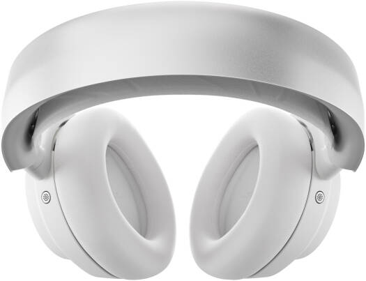 SteelSeries Arctis Nova Pro Wireless Multi-System Gaming Headset with 40mm neodymium drivers, ClearCast Gen2 retractable microphone, active noise cancellation, 360° spatial audio, compatible with PC and PS5, in white.