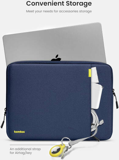 Tomtoc Defender-A13 Laptop Sleeve – Fits 13" MacBook or Surface Laptop, 360° Protection with Patented CornerArmor, Durable Recycled Fabric, YKK Zippers – Blue