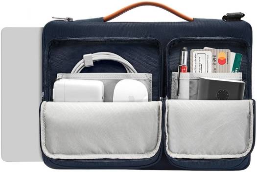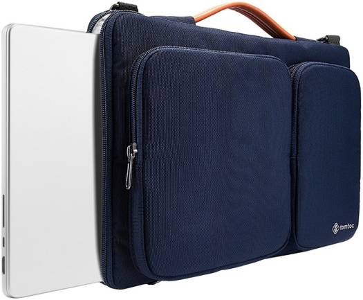 Tomtoc Defender-A42 Laptop Shoulder Bag – Fits 13" Laptops, 360° Protection with CornerArmor Patent, Cushion-Soft Fleece, Ultra-Thick Padding, Water-Resistant Fabric – Navy Blue