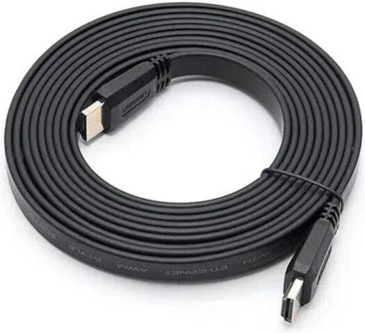UGREEN ED015 Flat HDMI Cable, 5-meter length, HDMI 2.0 standard, supports up to 4K@60Hz. Built with 30AWG tin-plated oxygen-free copper and gold-plated connectors. Suitable for PC, laptop, TV. Color: Black.