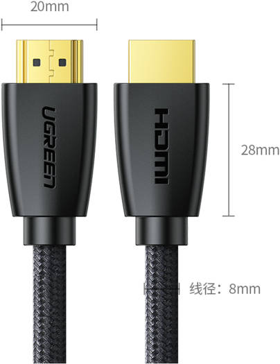 UGREEN HDMI-to-HDMI video cable, supporting 4K@60Hz UHD, 18Gbps transfer speed, multiple display modes, HDMI ARC, premium certified, 1.5m length, black.