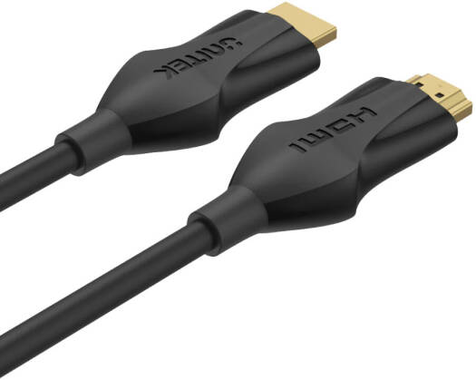 Unitek 8K Ultra High-Speed HDMI Cable with support for 8K at 60Hz, delivering 48Gbps bandwidth, featuring bare copper conductors, braided shielding, a flexible PVC jacket, gold-plated connectors, 1-meter length, in black.